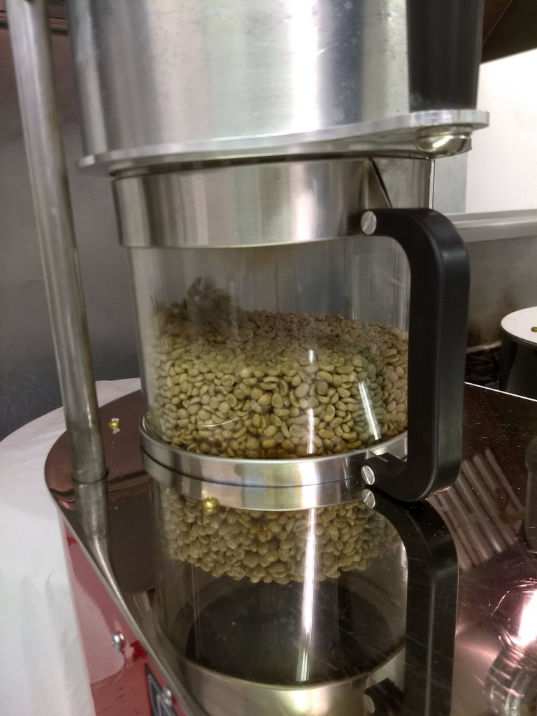 Beans, Beans everywhere. Roasting and sampling are good ways to get ‘er done. The roaster below is a Sonofresco roaster powered by propane. The beans are green. This is a before roast post!.